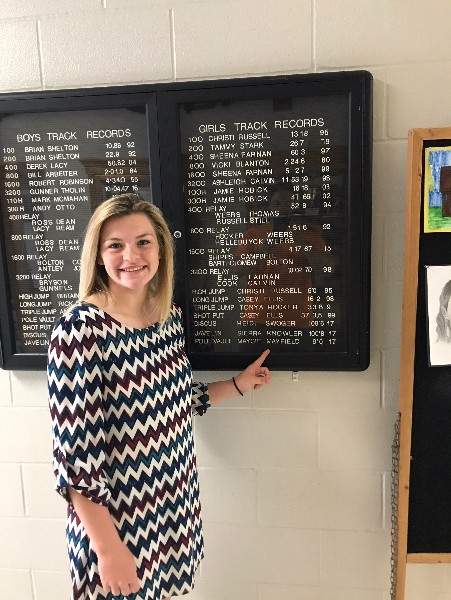 On 5/2/17, Maycie Mayfield set a new school record in pole vault with a vault of 9' 0".